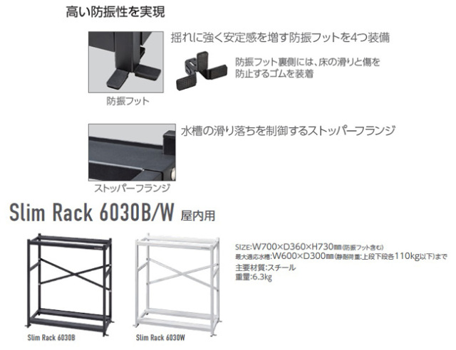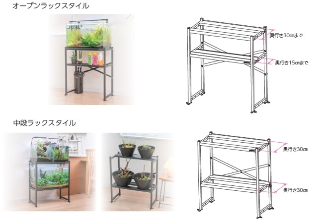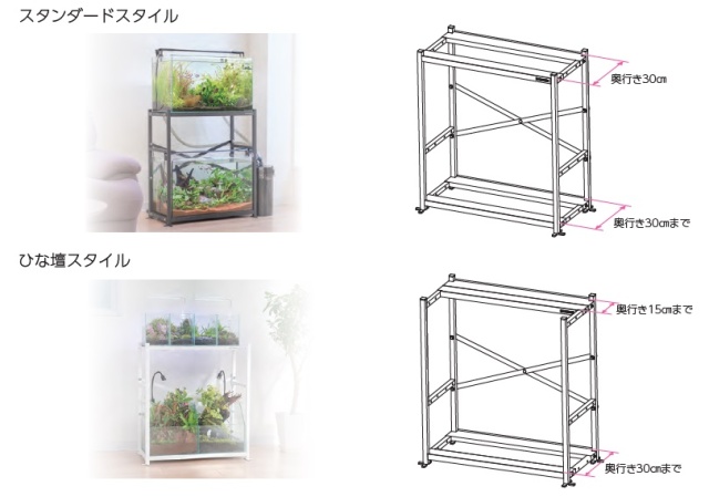 最大適応水槽:W600×D300mm(静耐荷重:上段下段各110㎏以下)まで