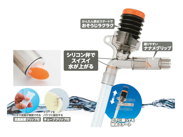 水槽内のレイアウトを崩すことなく観賞魚や水草にもやさしい水換えを実現します。