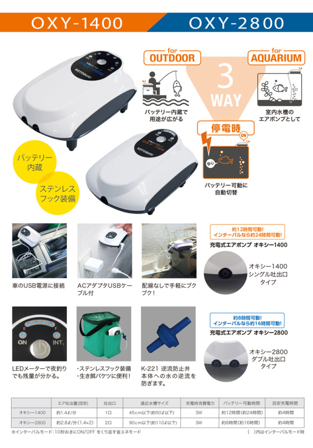 ・アダプタ式(低ボルト電源)なので、水槽周りで安心して使用できます。