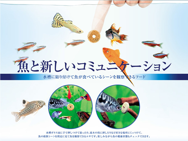 水槽のガラス面に貼り付けて、食べるシーンを見ることが出来る新しいコミュニケーションフードです。