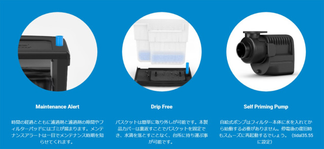 seachem tidalは、他社とは大きく異なる外掛け式フィルターです。