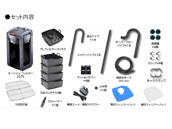 エーハイムコード:2078330 適合水槽(目安): 75~150cm(約131~345L)