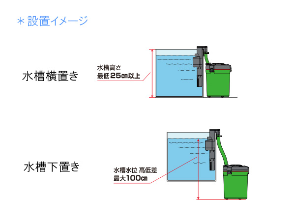 ※水槽の下に置く場合、水槽との高低差最大100cmまで。