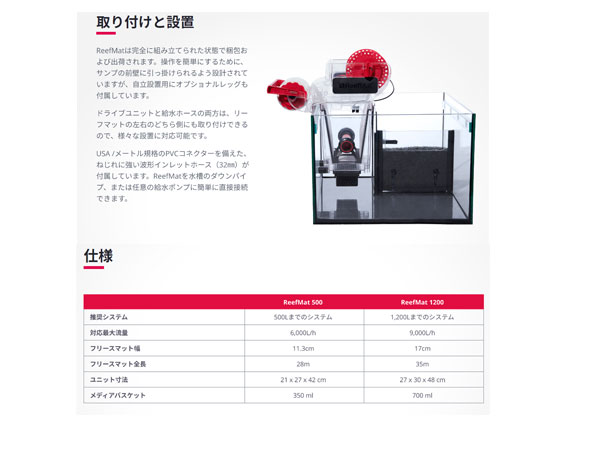 詳細はhttps://www.redseafish.com/ja/hardware/reefmat/をご確認ください。