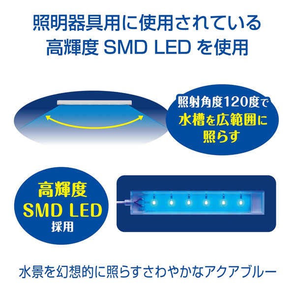 ・高輝度SMD LED採用。青色LEDで水槽内を幻想的に照らす。