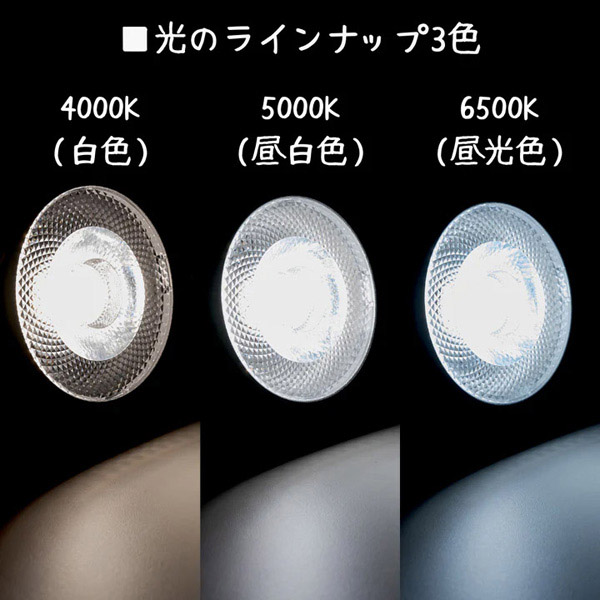 5000K(日中の太陽の光)、6500K(曇りの日の光)の3種類をラインアップ。